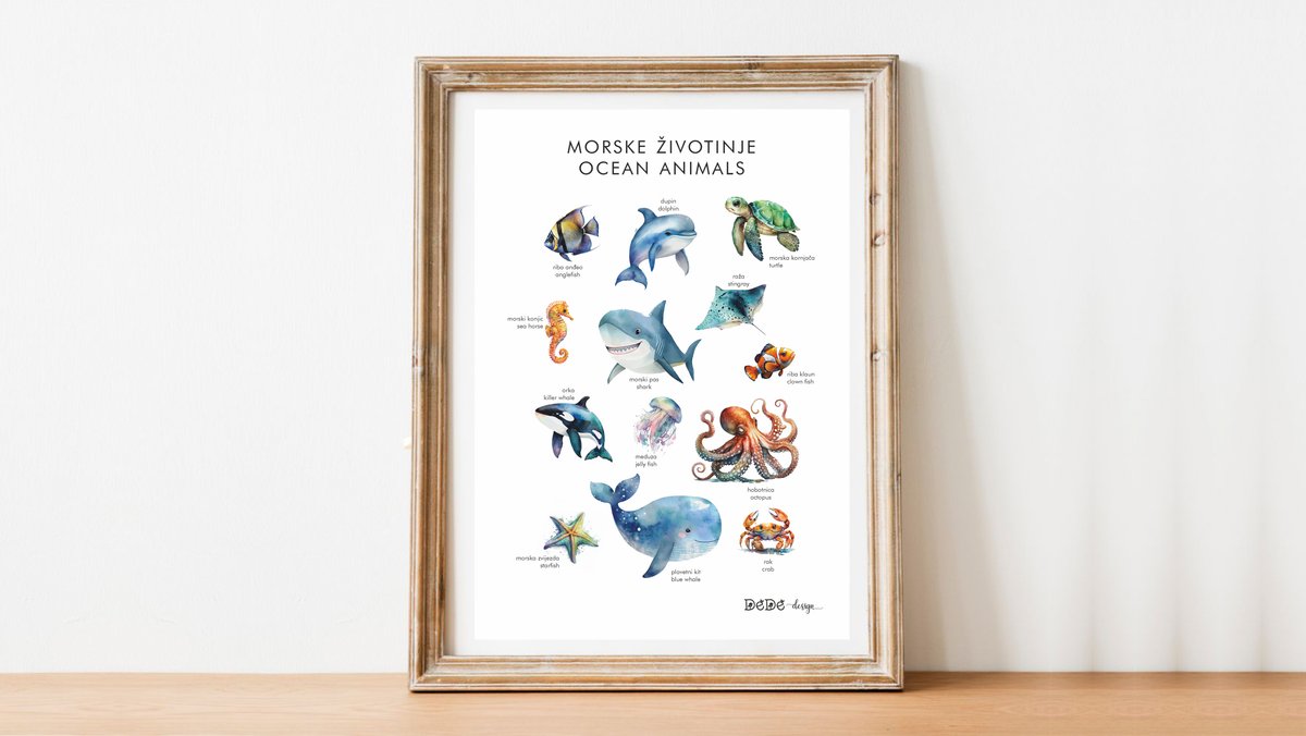 Plakat A3 (30x40cm ) MORSKE ŽIVOTINJE / hrv. i eng. nazivi