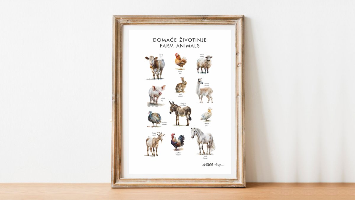 Plakat A3 (30x40cm ) DOMAĆE ŽIVOTINJE / hrv. i eng. nazivi