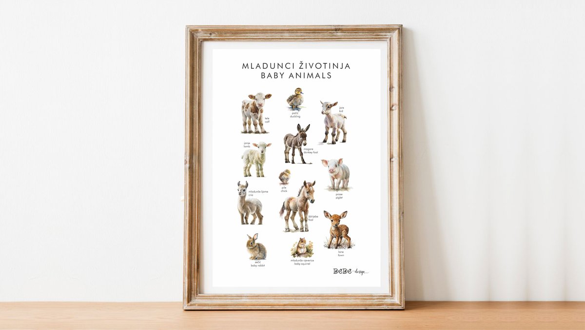 Plakat A3 (30x40cm ) MLADUNCI ŽIVOTINJA / hrv. i eng. nazivi