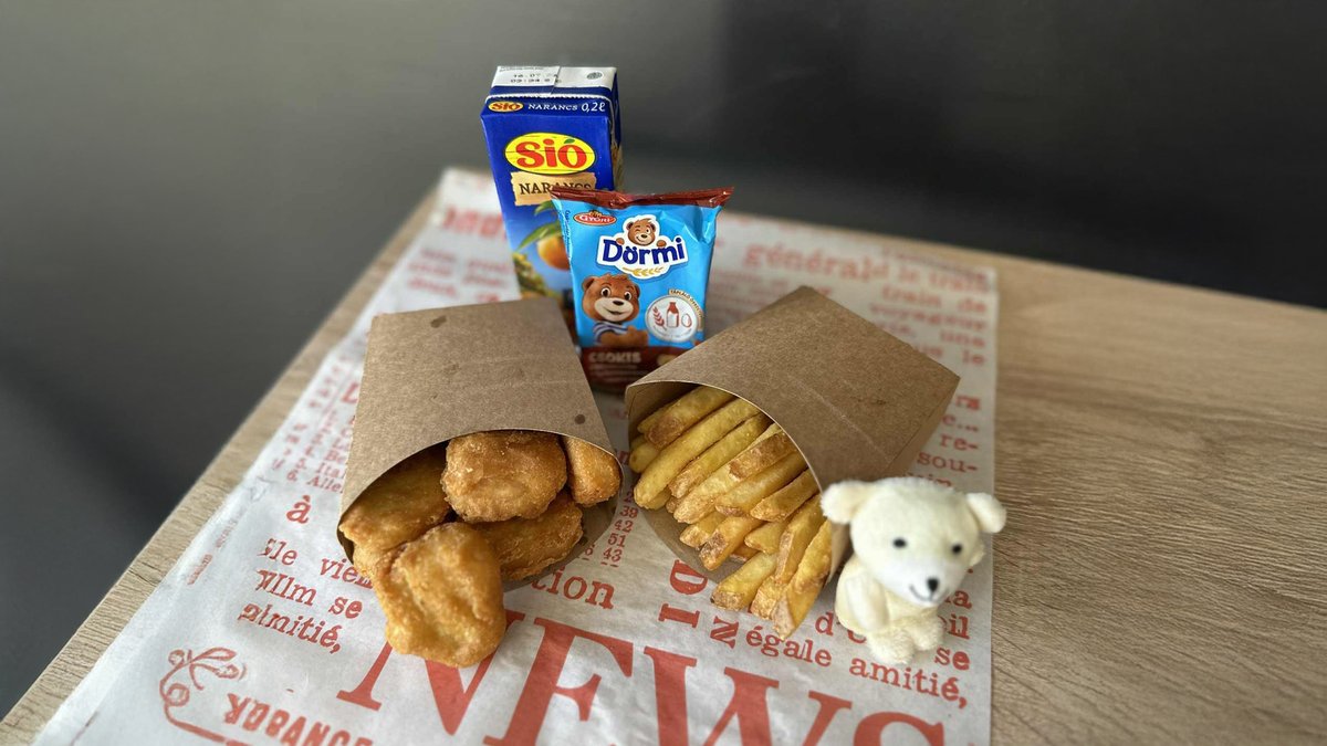 6db Chicken nuggets, Kis adag burgonya, 0,2l-es Sió, Apró meglepetés vagy csokis Dörmi
