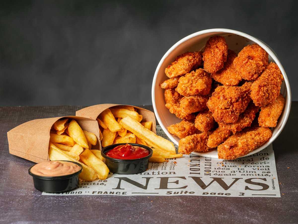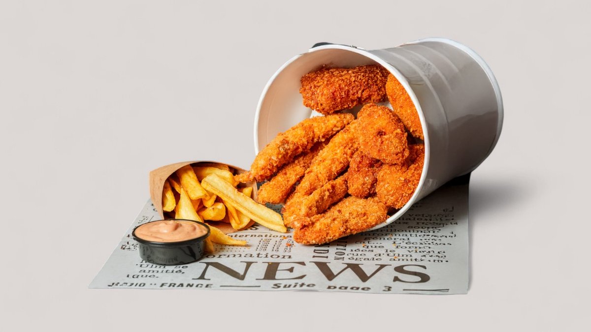 2db combfilé, 2db wings, 4db strips, hasábburgonya, mártogatós
