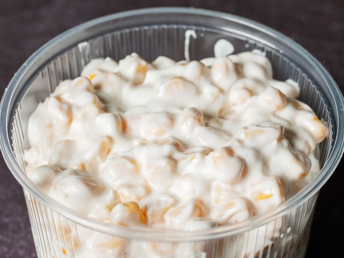 Saláta, paradicsom, uborka, kukorica, lilahagyma, csemege uborka, választható öntet