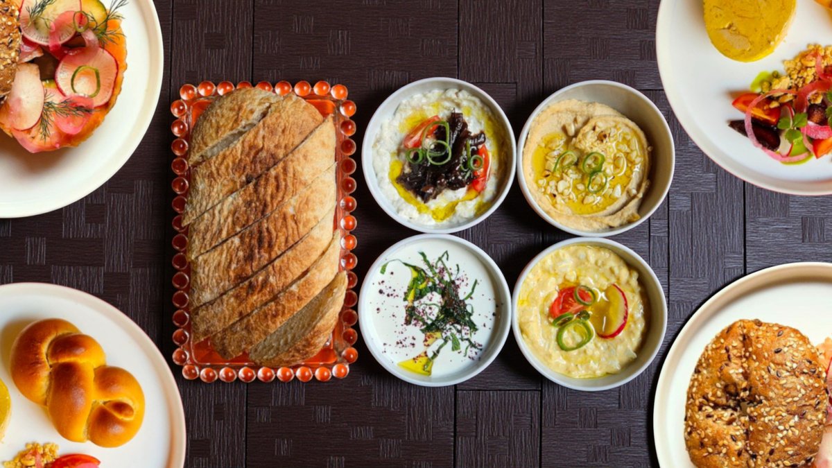 Brunch, frissen sült bagelek, mentes desszertek, torták, péksütemények, borok.