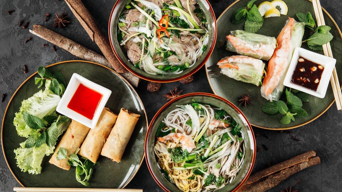 Autentikus vietnami ízvilág levesek és különböző fogások választékában.