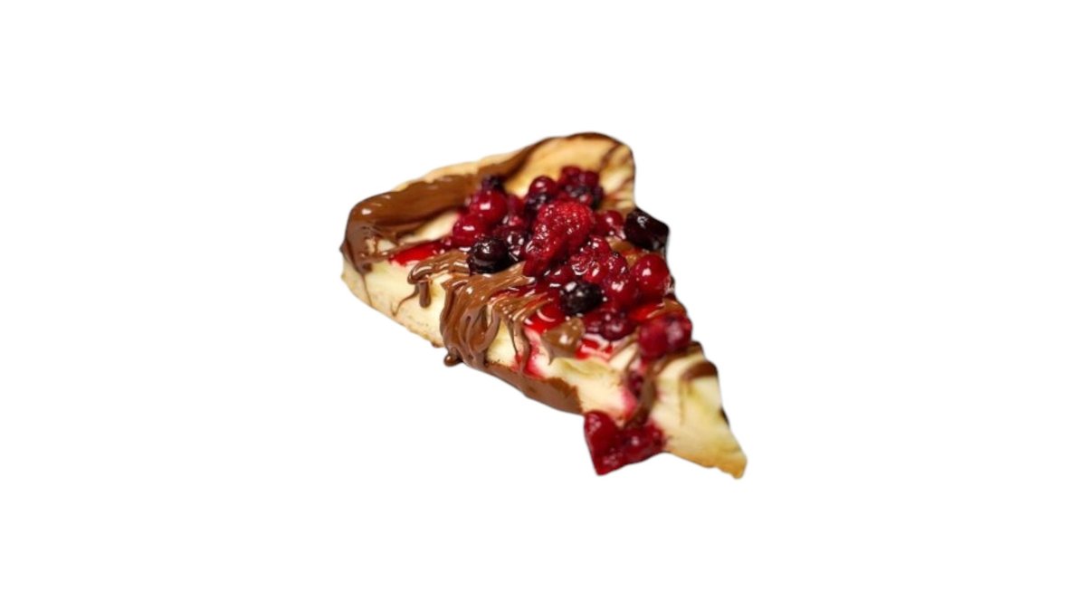 Ízletes amerikai sajttorta (160gr szelet) gazdagon megpakolva nutellával és friss erdei gyümölcsökkel.