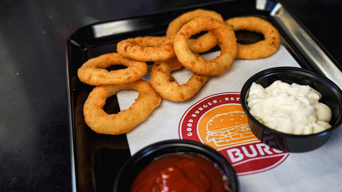 "Touchdown menü: 3 ízletes alapburger (Chiefs, Clemson, Sooners), 1 adag ropogós hasábburgonya és hagymakarika. Az igazán nagy éhség leküzdésére!