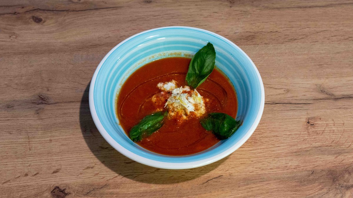 paradicsom sugo, bazsalikom, EVOO burrata sajt