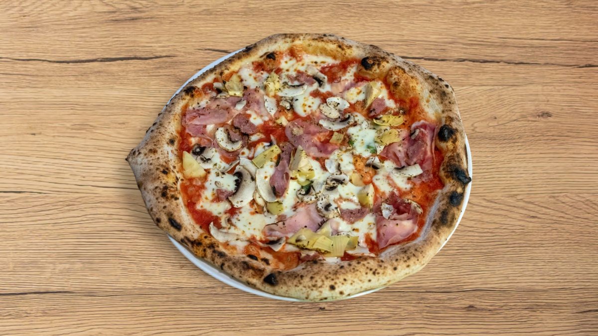 Paradicsom, mozzarella fior di latte, sonka, gomba, articsóka,olivabogyó, oregánó