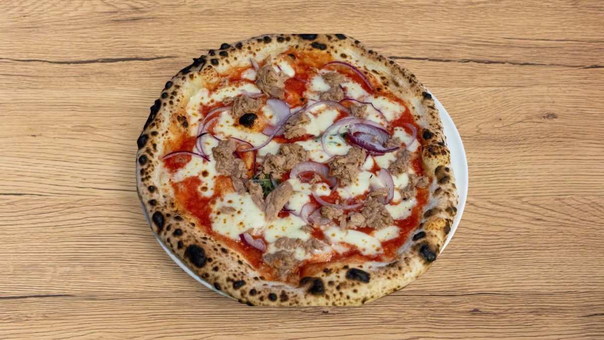 paradicsom, mozzarella fiori di latte, bazsalikom, lilahagyma, tonhal, extra szűz olívaolaj