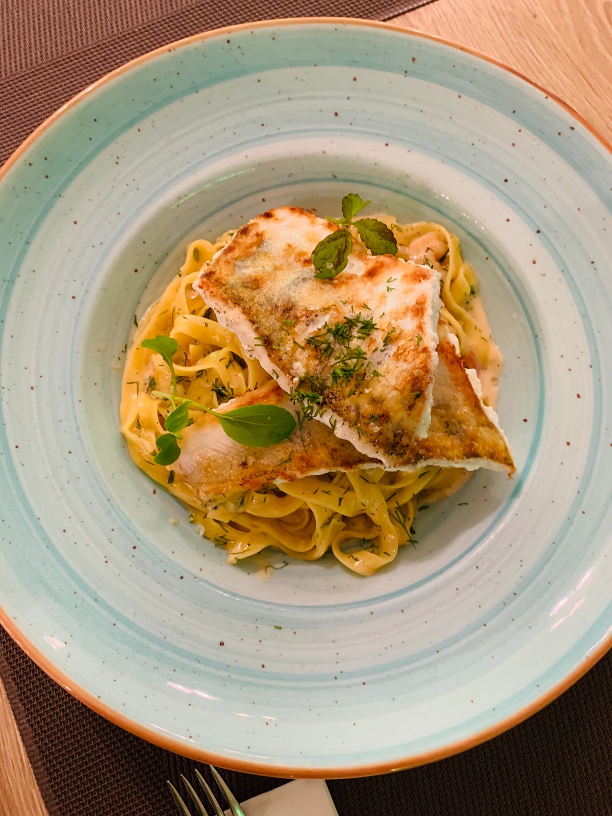 Fogas filé, kapros rákragu, tagliatelle gluténmentes