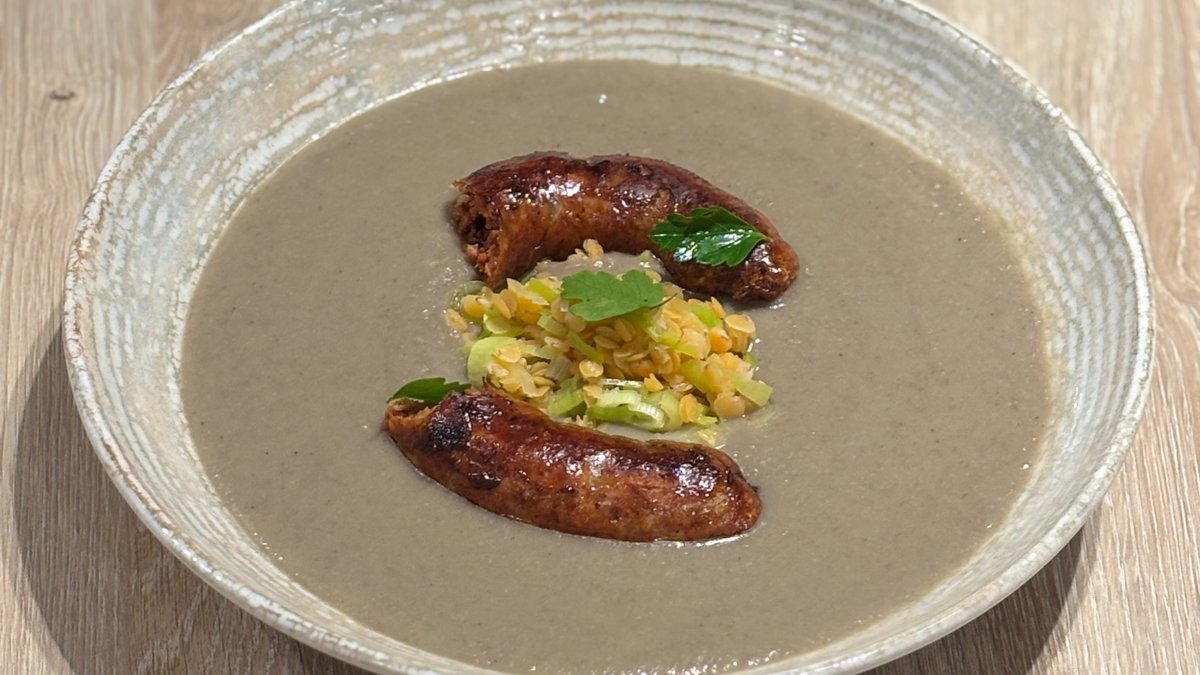 Lencsefőzelék, házi kolbász