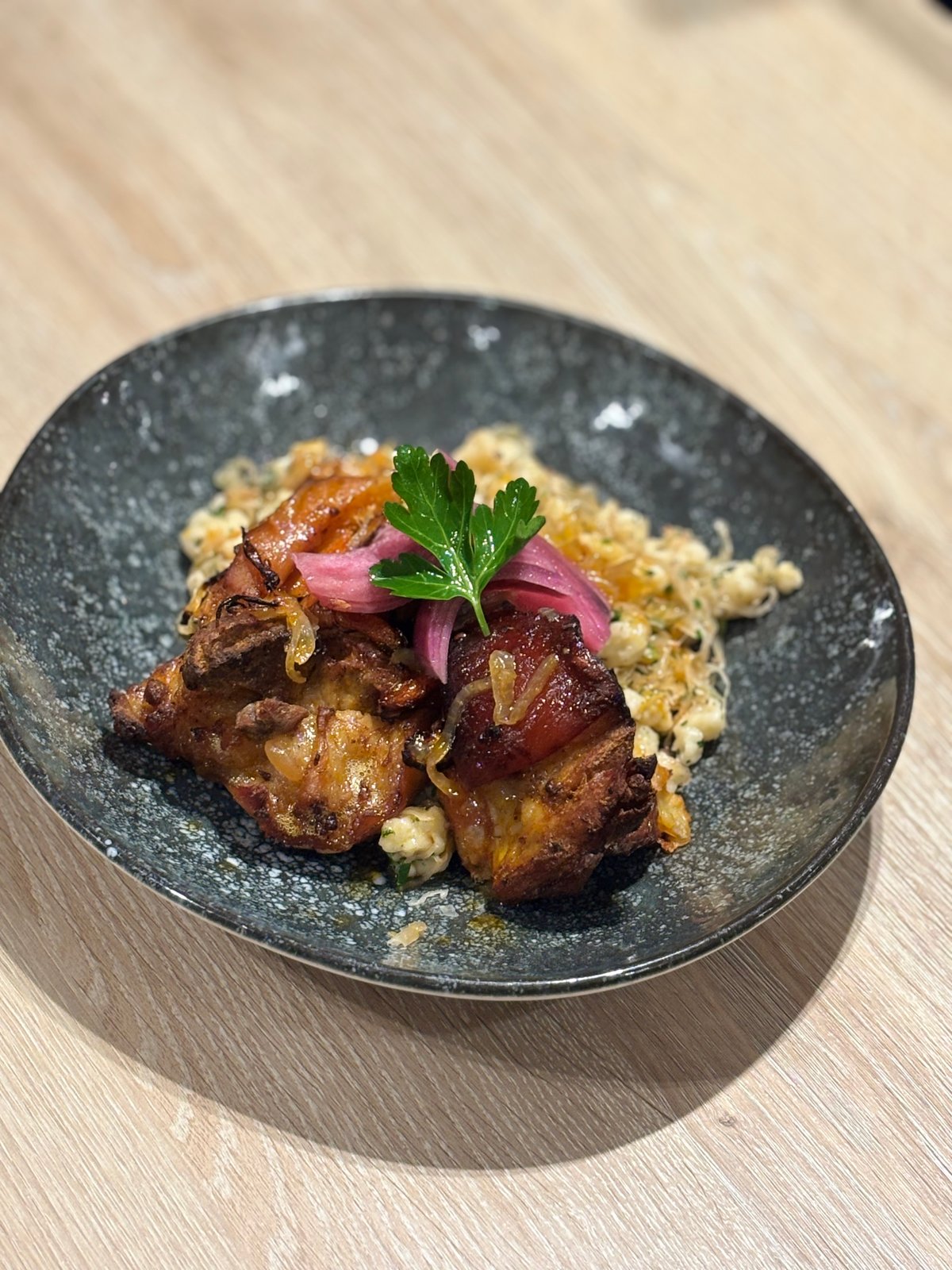 Sült csülök falatok, káposztás galuska