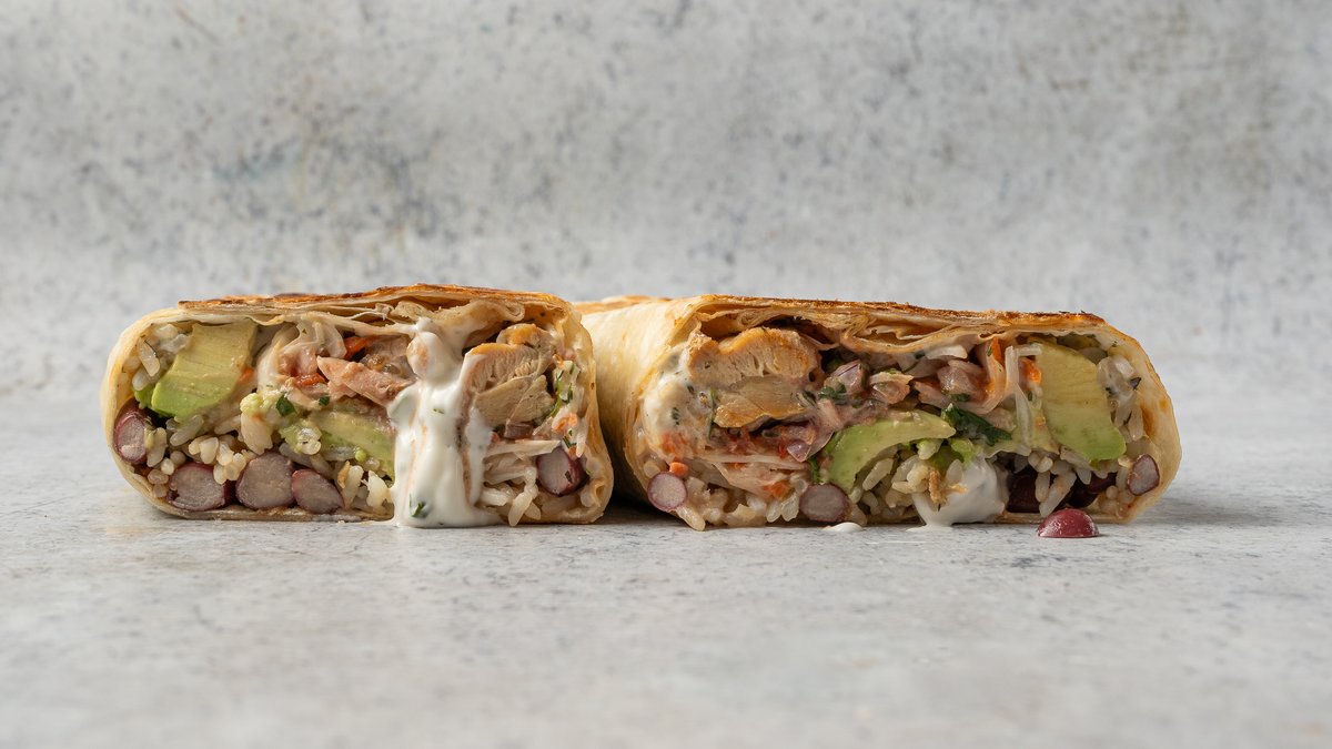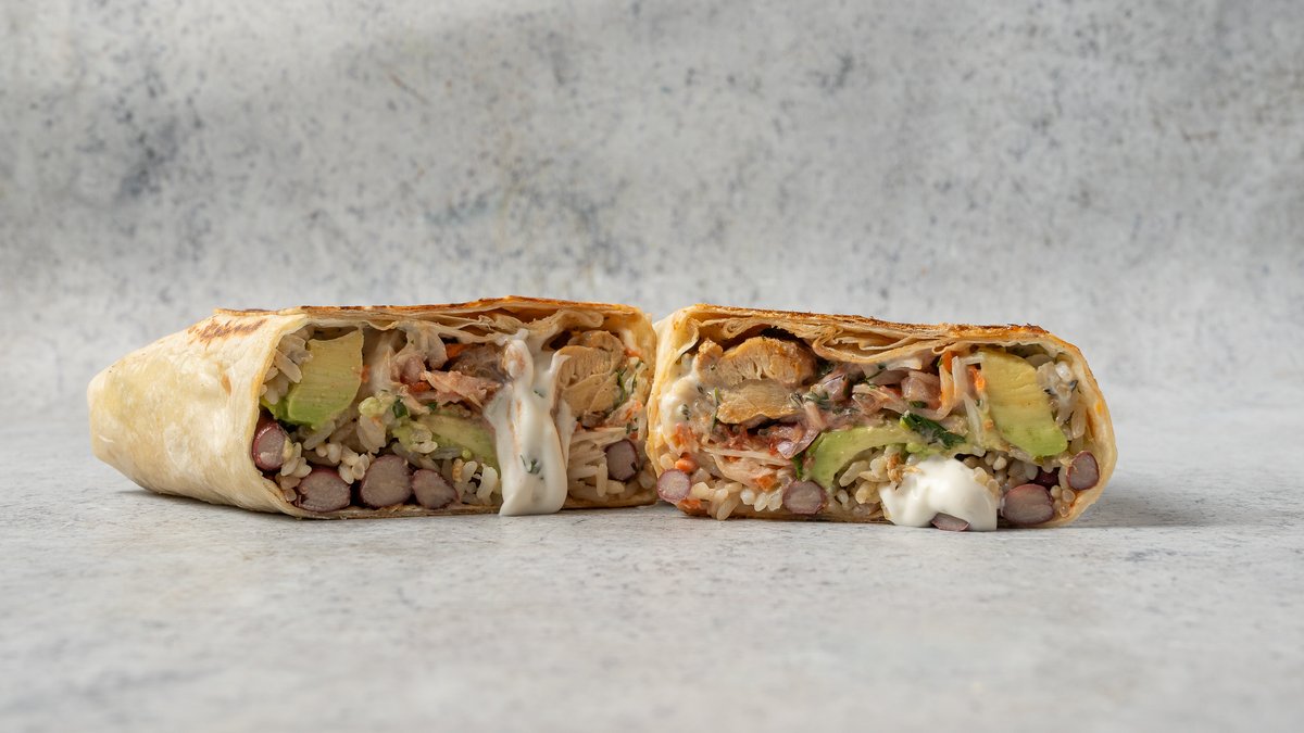 csirke, cheddar, sült bab, szeletelt avokadó, káposzta slaw, zöldcitromos korianderes szósz