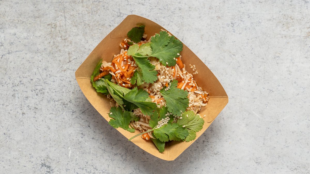 csirke, cheddar, sült bab, szeletelt avokadó, káposzta slaw, zöldcitromos korianderes szósz