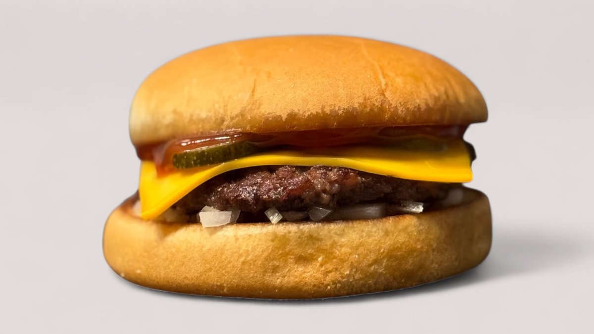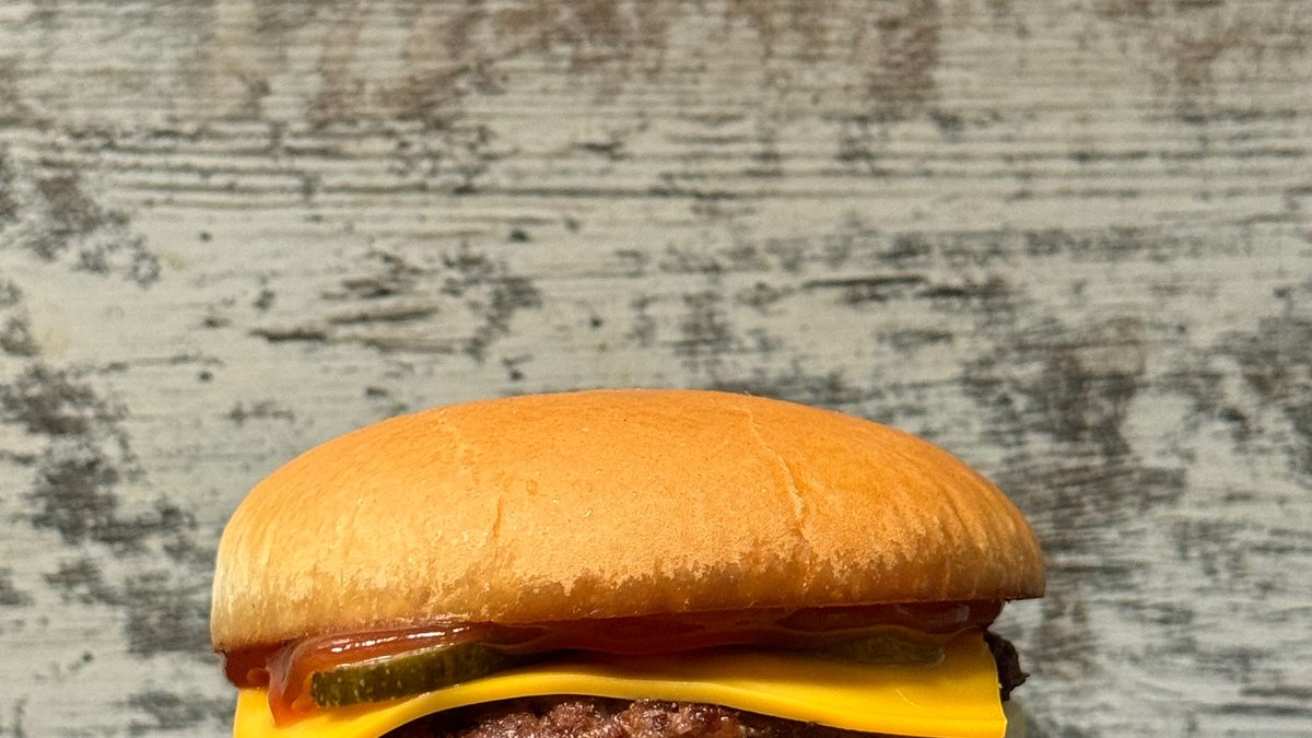 Szaftos marhahús, olvadó cheddar sajt, ketchup, egy kevés mustár, savanyított uborka, apróra vágott hagyma, puha vajon pirult buci,