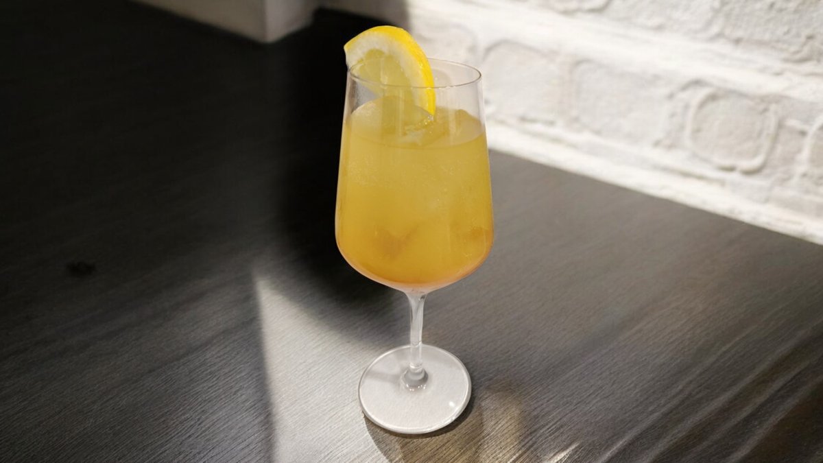 Amalfi citromait idéző hűsítő alkoholmentes koktél. Prosecco, lemonsoda, granita, citrom, jég