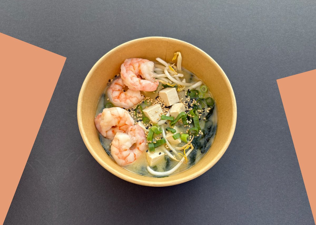 Miso alaplé, garnéla, wakame, natúr tofu, újhagyma, mungóbabcsíra