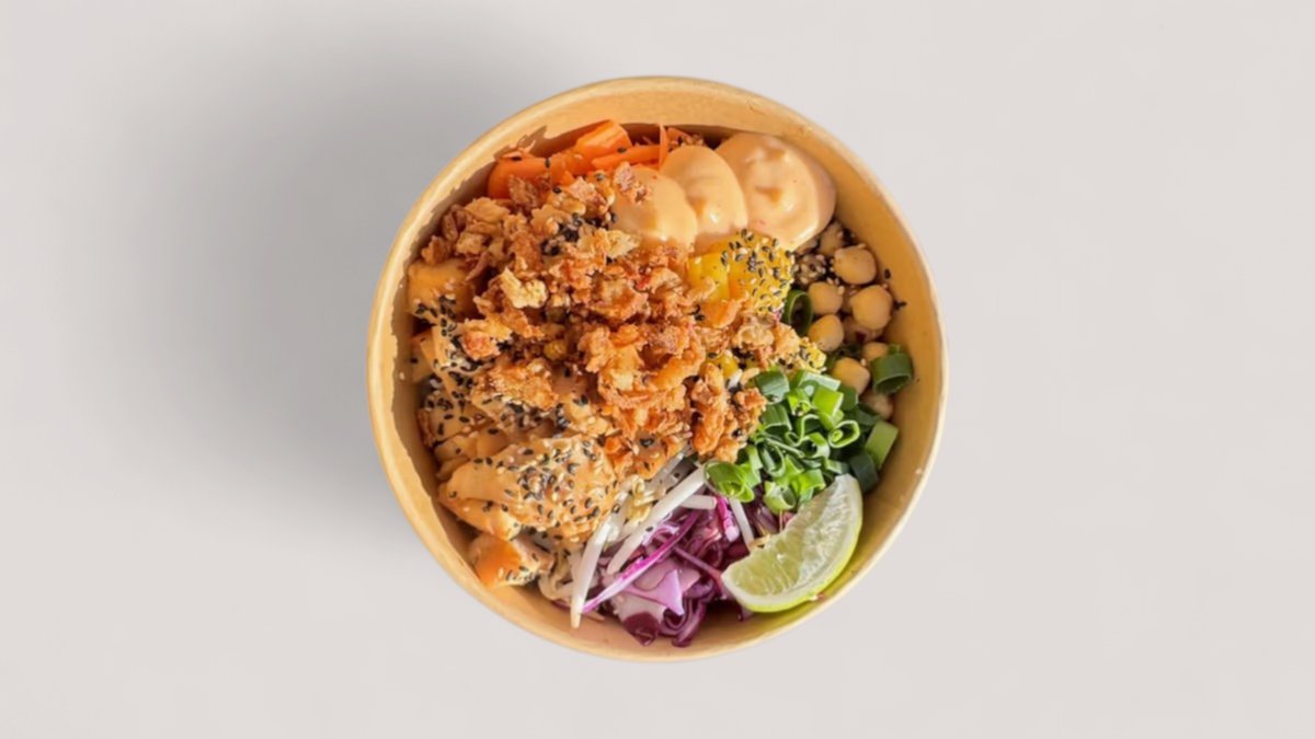 Optional base+1 protein+3 veggies+3 választható crispy & sprout+1 extra topping+2 optional sauce & mayo