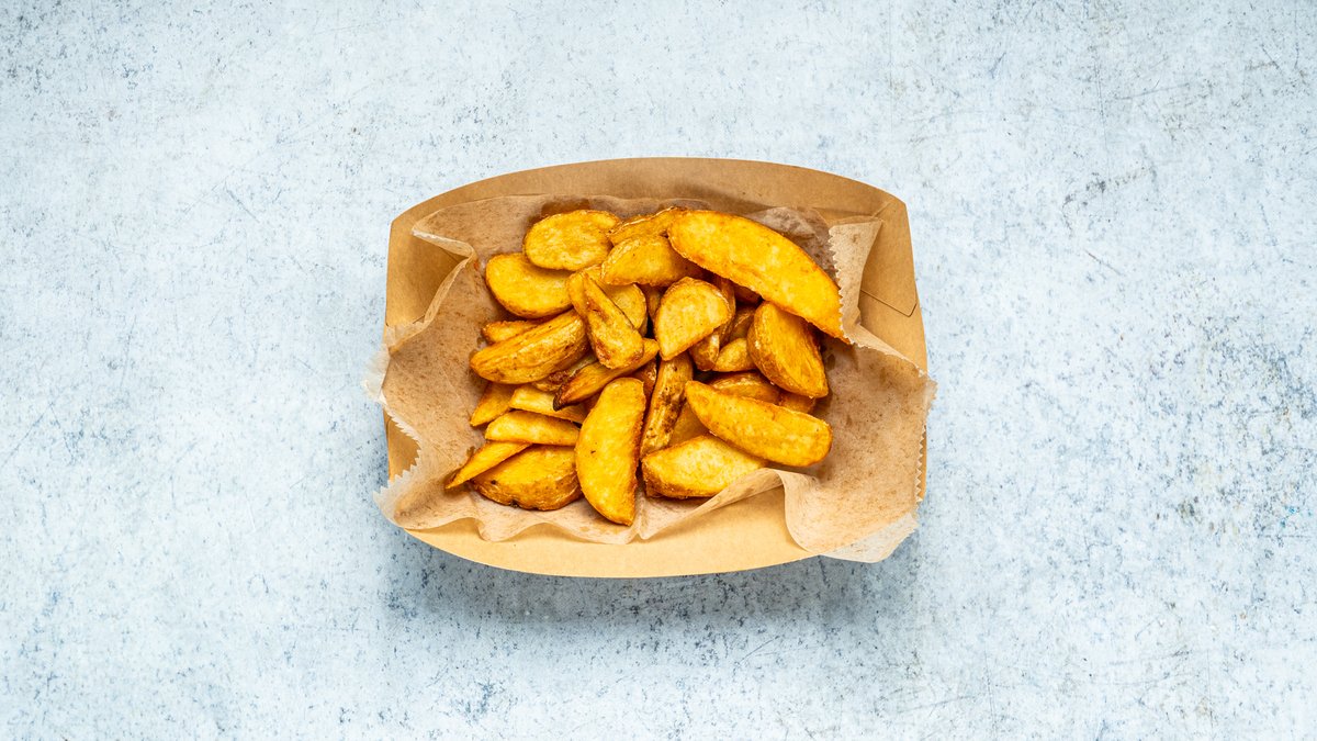 Rántott Gouda, hasábburgonya, kukoricasaláta, spicy mayo