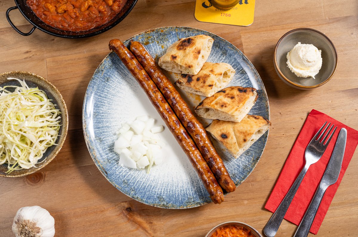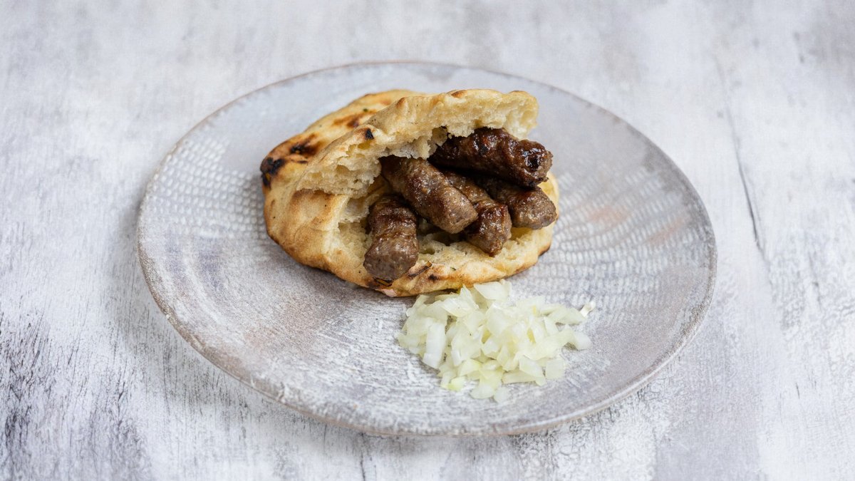 200g Balkáni vékony sertés grillkolbász bosnyák lepény somunnal hagymával