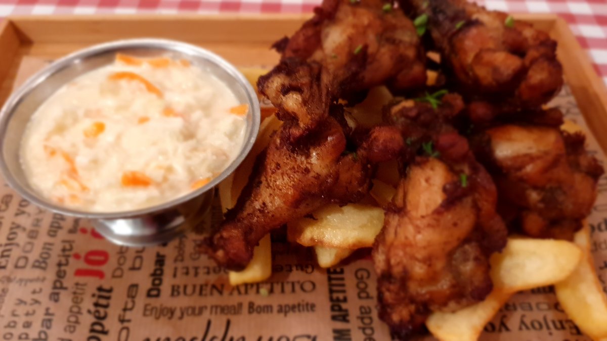 Egyízűletes, halal vágású csirkeszárnyakból készítjük ezt a fogást, BBQ ízesítéssel , Kentucky típusú bundában . Sült burgonyát és amerikai típusú káposztasalátát kínálunk hozzá! ...egy ízletes "nasi" meccsnézéshez, otthoni sörözéshez..., chips helyett! .-)