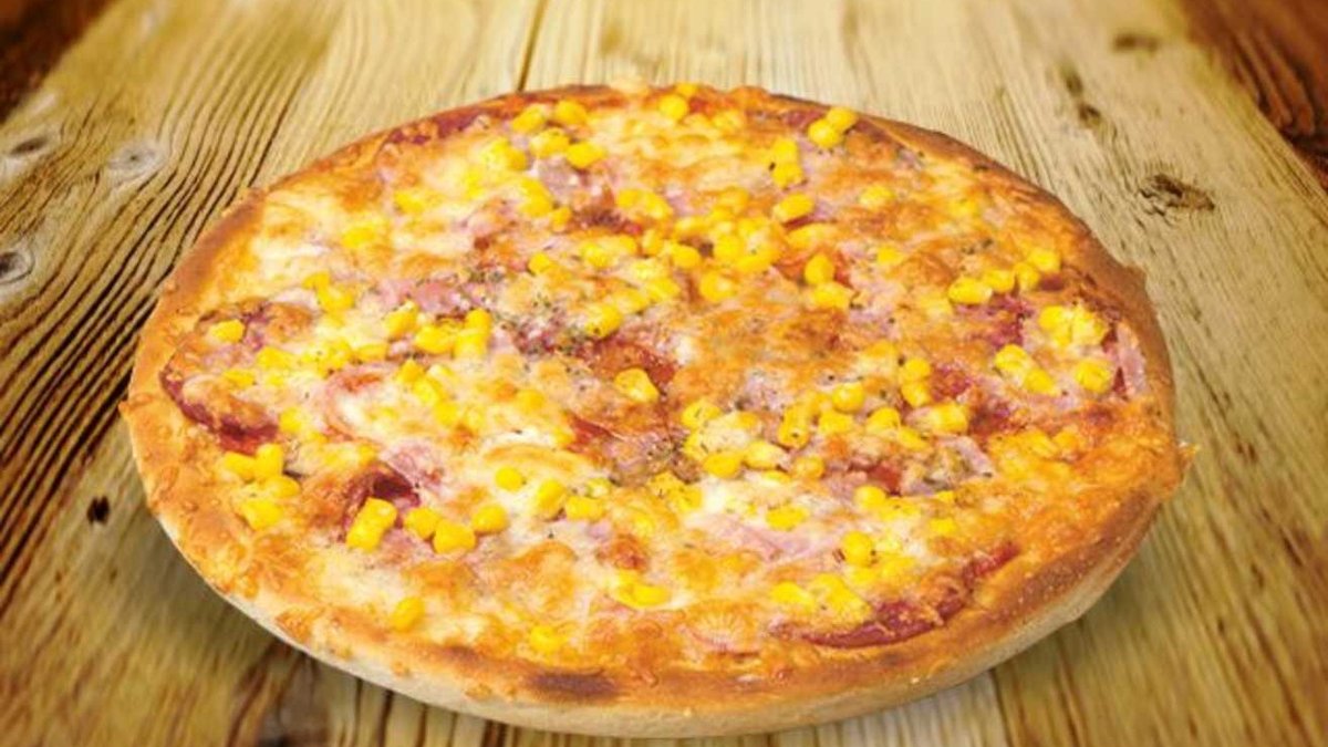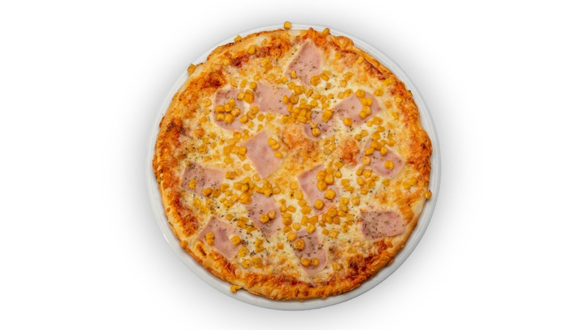 Házi pizza szósz, sonka, kukorica, mozzarella A kép illusztráció