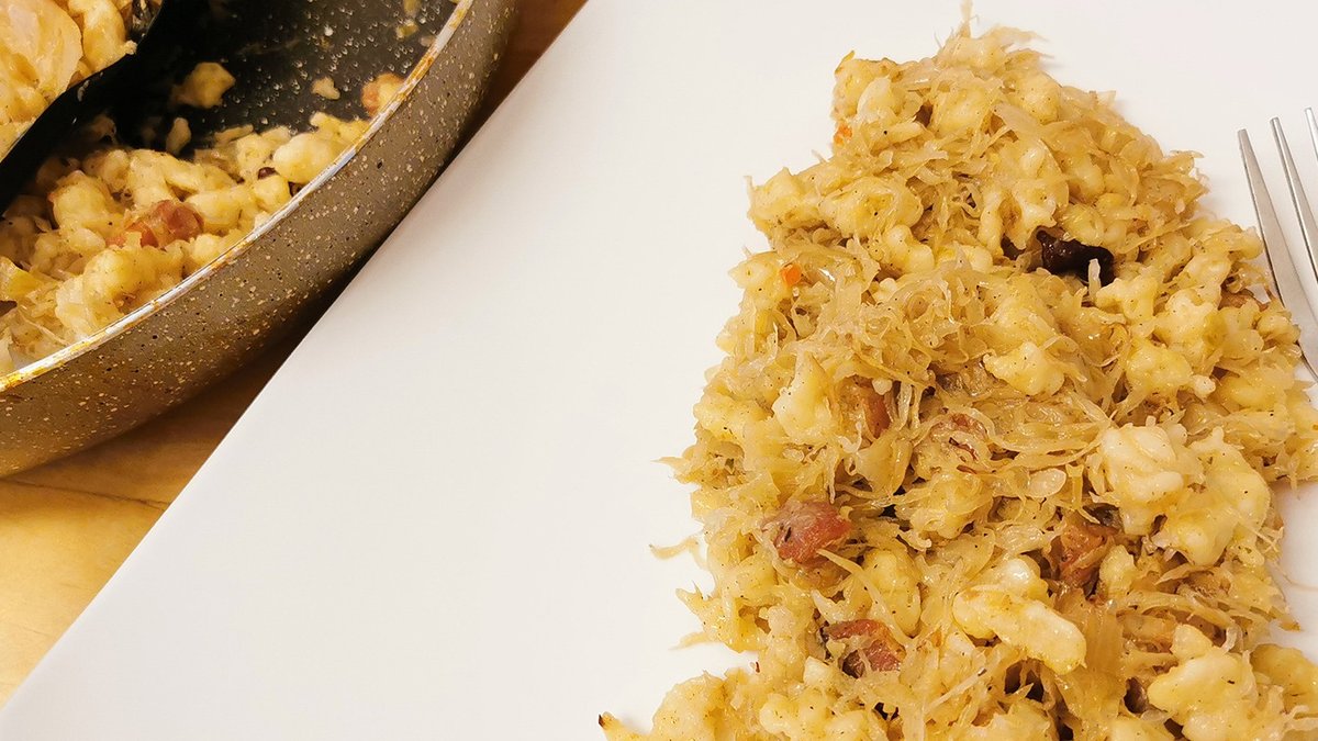 Burgonyagaluska, juhtúróval, szalonnapörccel, tejföllel