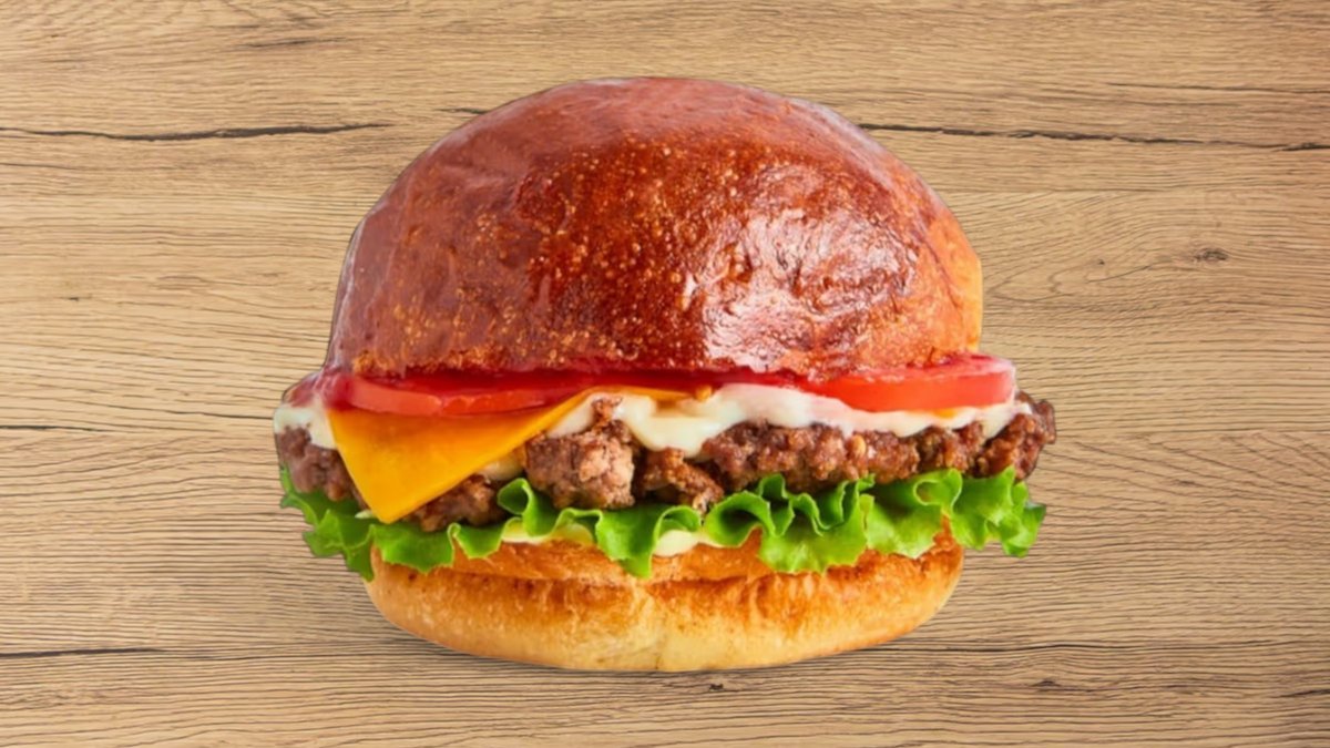 házi buciban, ropogós baconnel trappista sajttal házi pikáns szósszal,friss salátával