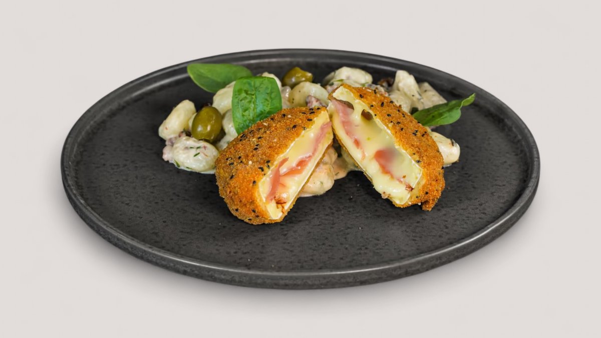 Rántott camambert sonkával töltve tejszínes aszalt paradicsomos gnocchi