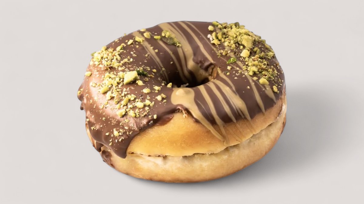HU: Kadaif tésztával és pisztáciával töltve, Belga tejcsokoládéízű máz, pisztácia ízű máz és pisztácia. EN: Filled with Kadaif pastry and pistachio, Belgium milk chocolate glazing, pistachio chocolate and pistachios.