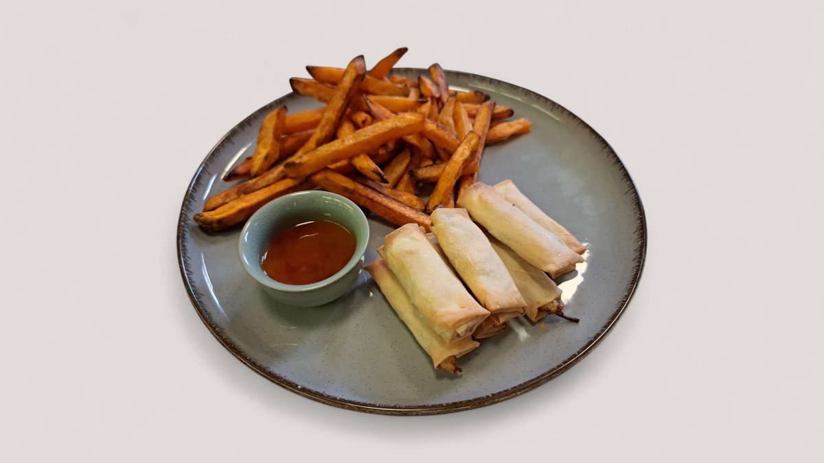 Tavaszi tekercs édesburgonya hasábbal és édes chilivel