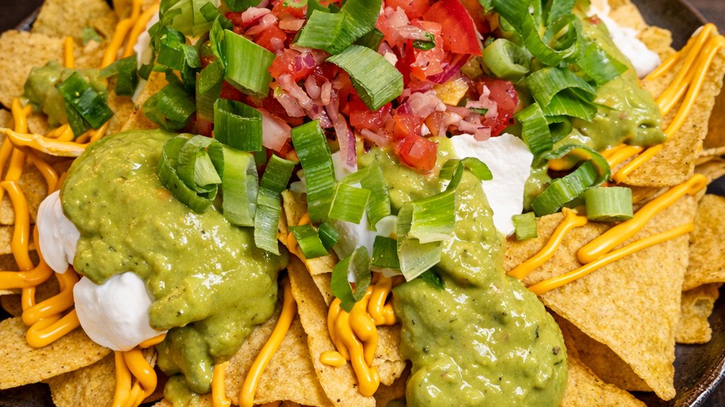 Guacamole, cheddar szósz, házi salsa, tejföl, újhagyma, koriander, lime
