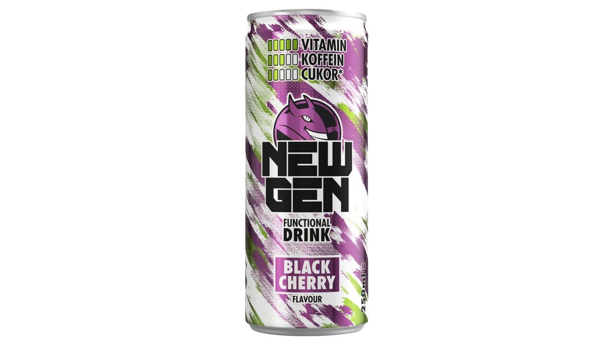 New Gen fekete cseresznye- és tuttifruttiízű, szénsavas energiaital, 250 ml