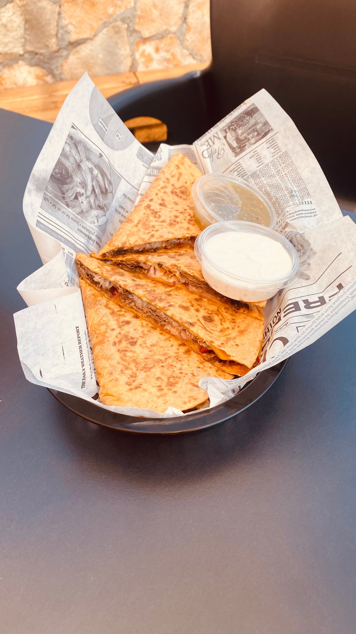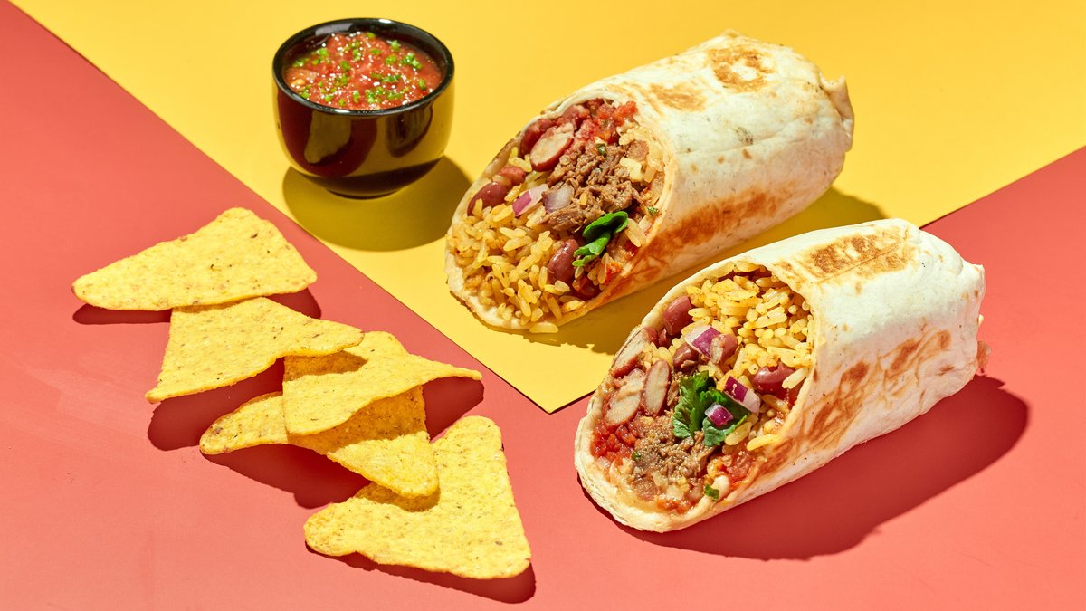 Tortilla lapba tekert kézműves burrito friss alapanyagokból.