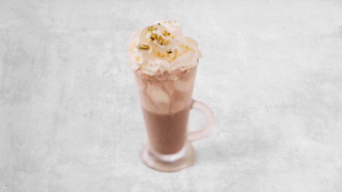 /vegán csokoládé fagylalt, csokoládés szójatej, cukormentes csokoládé szirup, vegán tejszínhab, koktélcseresznye/