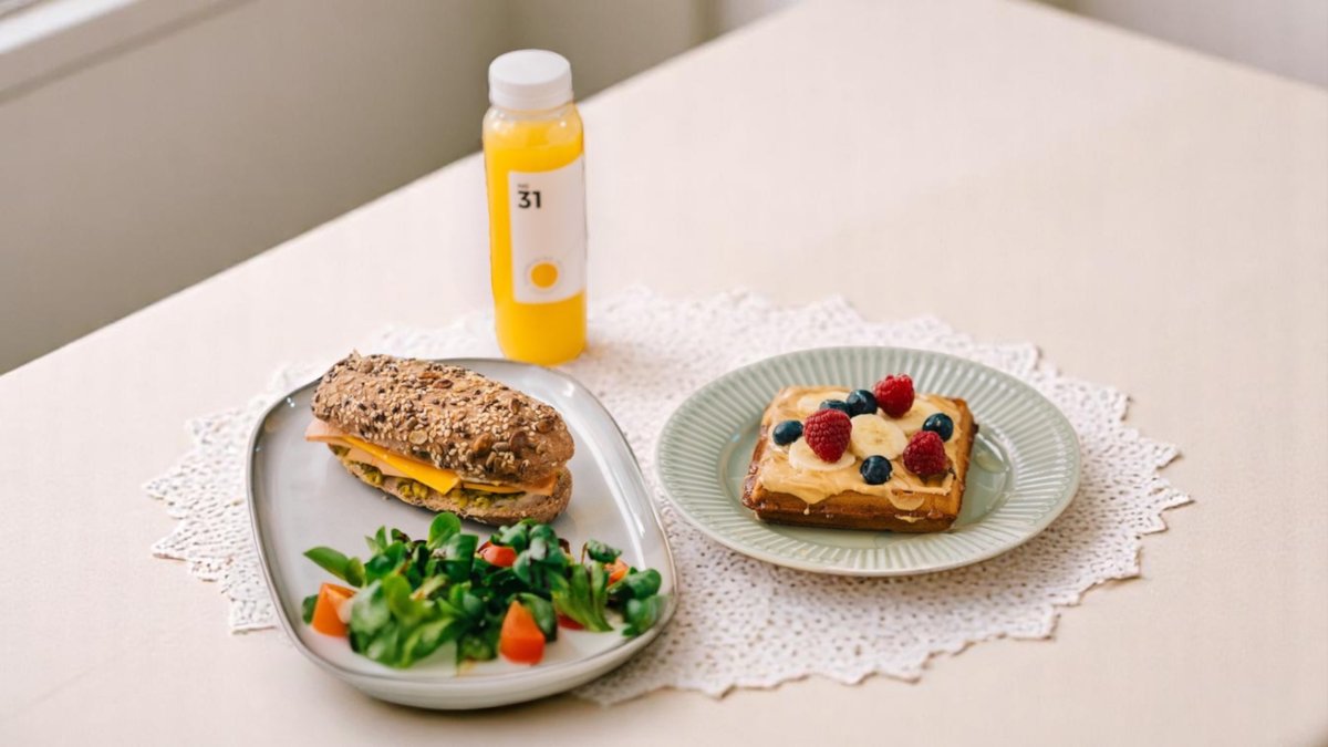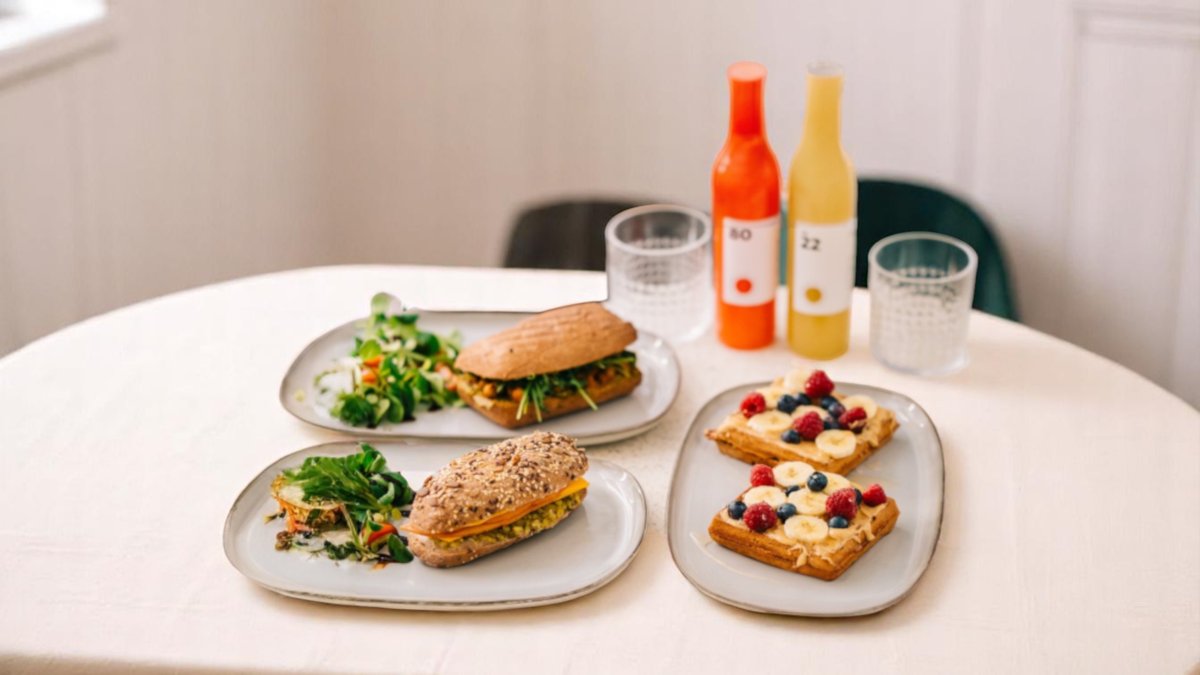 /2 db választható grillezett szendvics, 1 db választható gofri (egész adag), 2 db választható Superjuice/