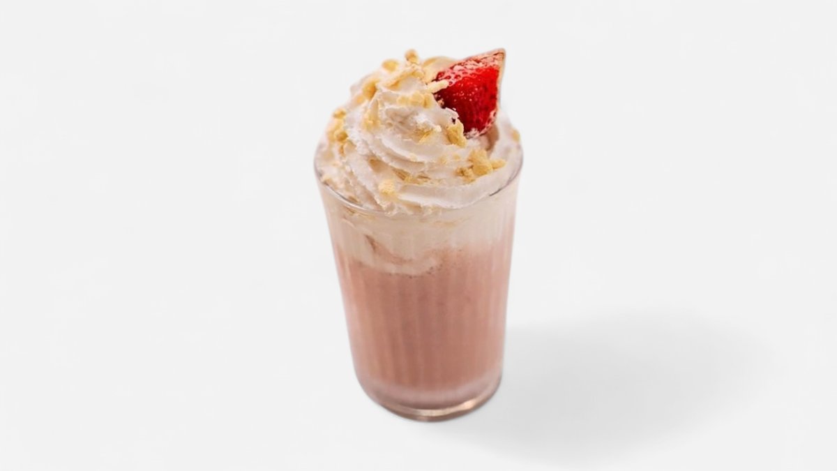 vegán vanília fagylalt, növényi tej, eper, cukormentes vanília szirup, vegán tejszínhab, cukormentes eper szirup