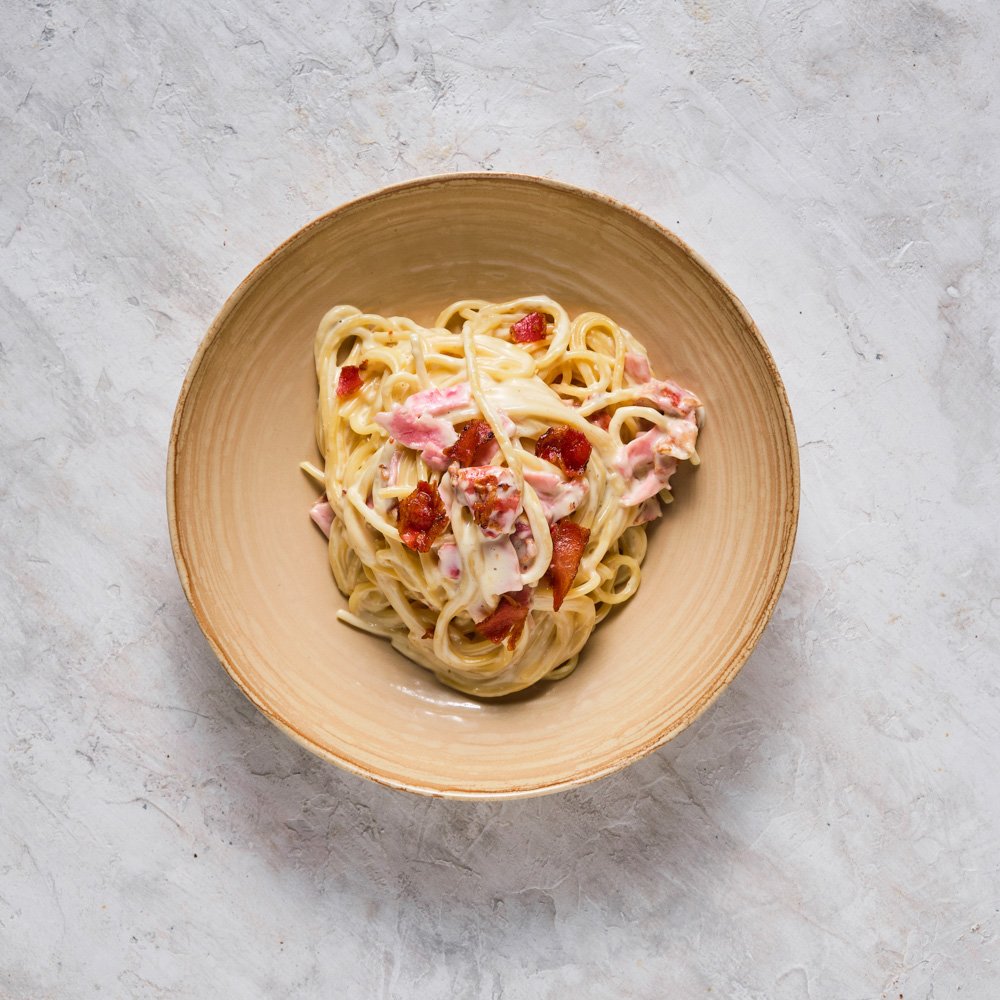 sonkás, baconos, tojásos, tejszínes szószban, parmezán sajttal (Kérlek, válassz hozzá tésztafajtát!)