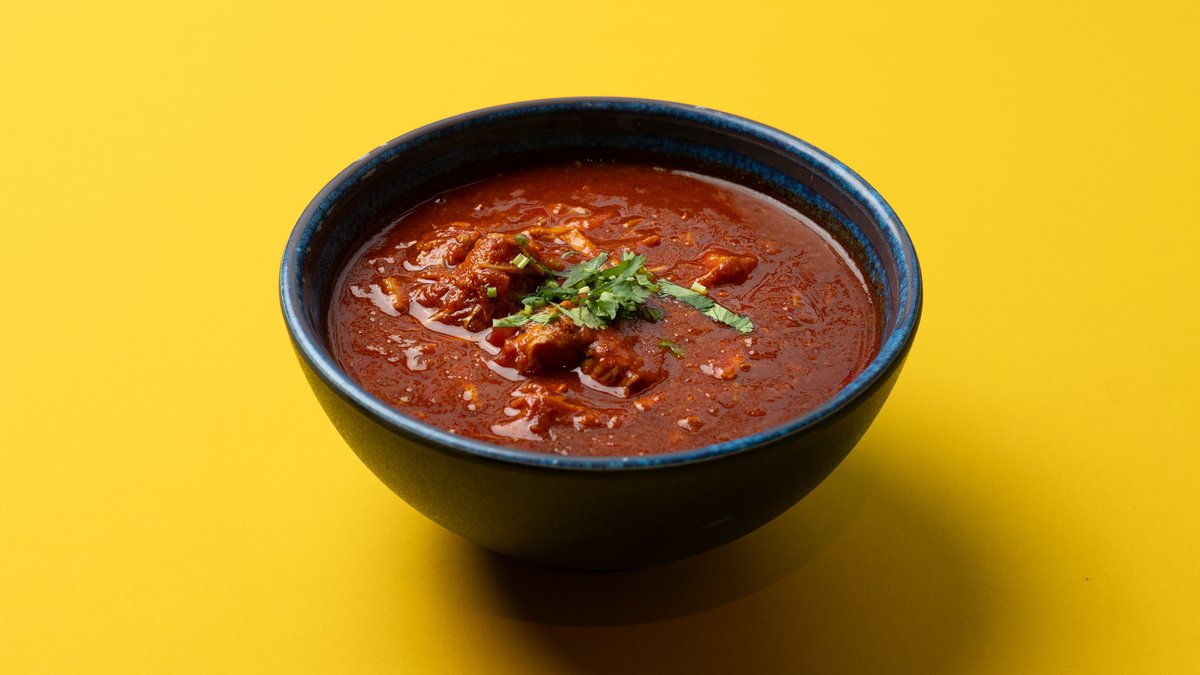 Lassan főtt bárányhús, paprika és hagyma frissen őrölt fűszerekben főzve.