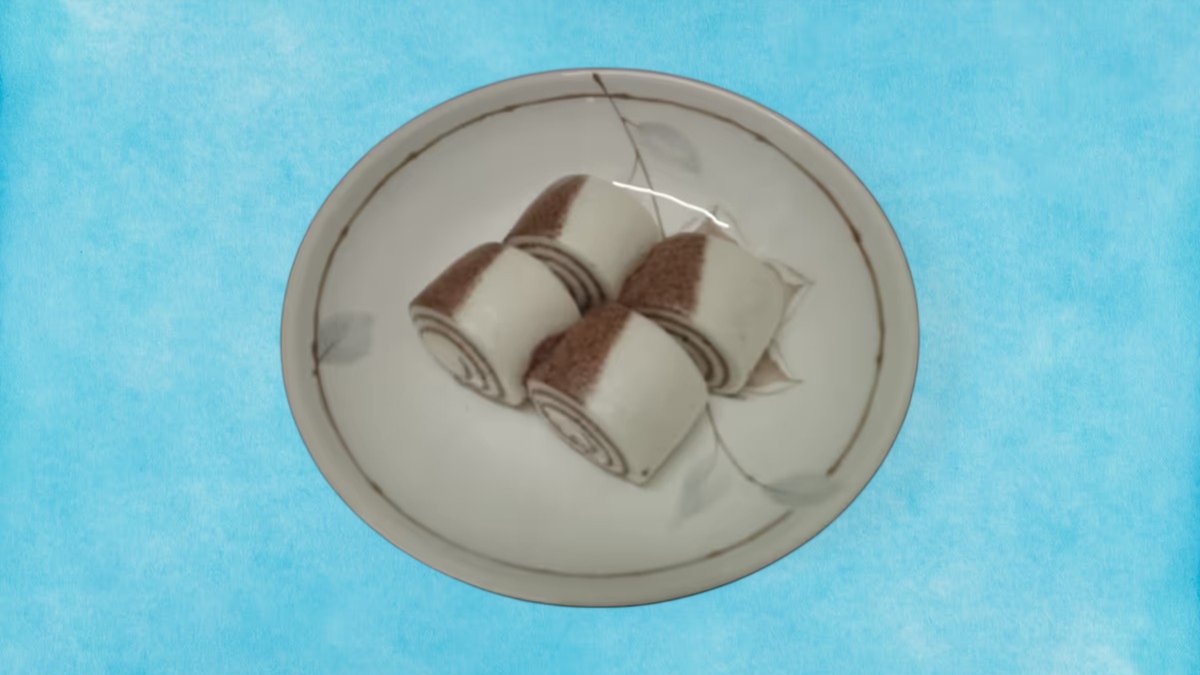 4db gőzölt, édeskés tekercs fekete rizslisztből készítve. Természetes fekete színe van, és enyhén diós ízű.
