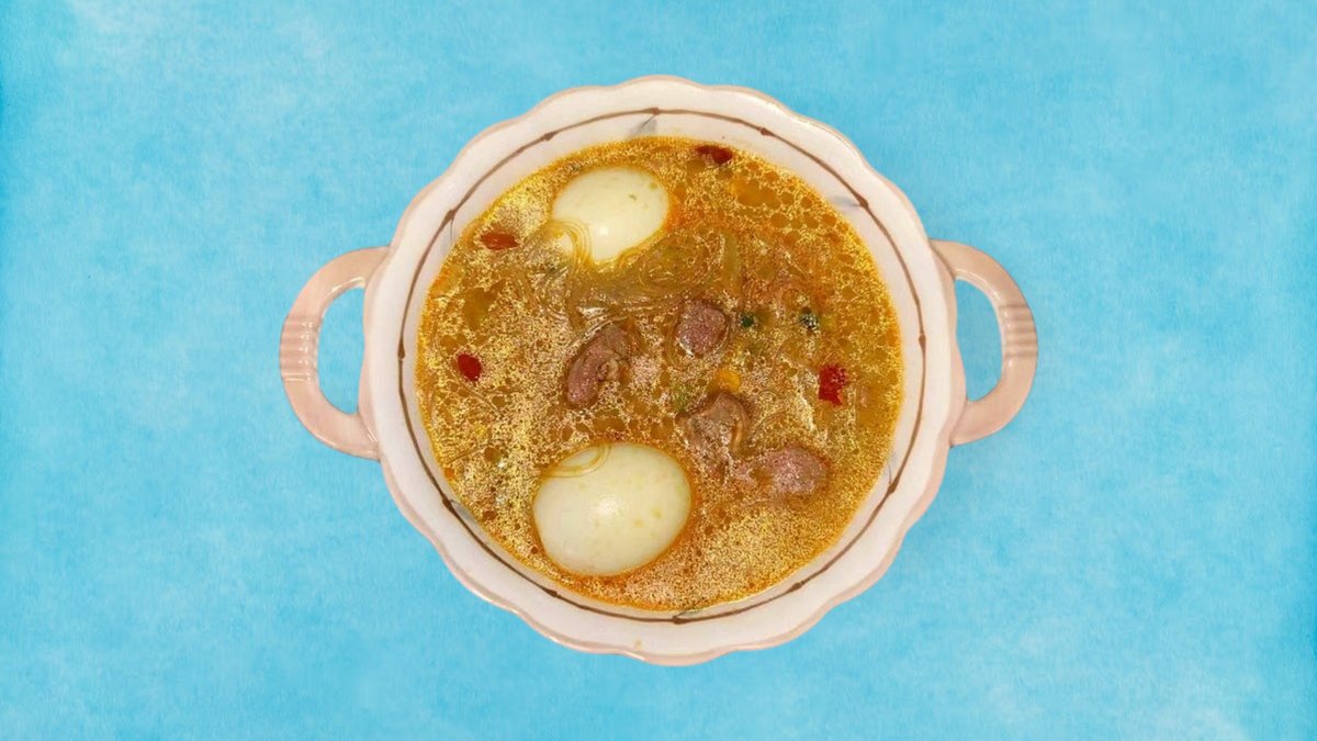 Gazdag, krémes húsleves hongkongi stílusban, amelyet sertéskarajjal, zöldségekkel és tojással főzünk össze. A vermicelli tészta könnyedséget ad az ételnek, miközben megőrzi a tradicionális ízvilág mélységét.