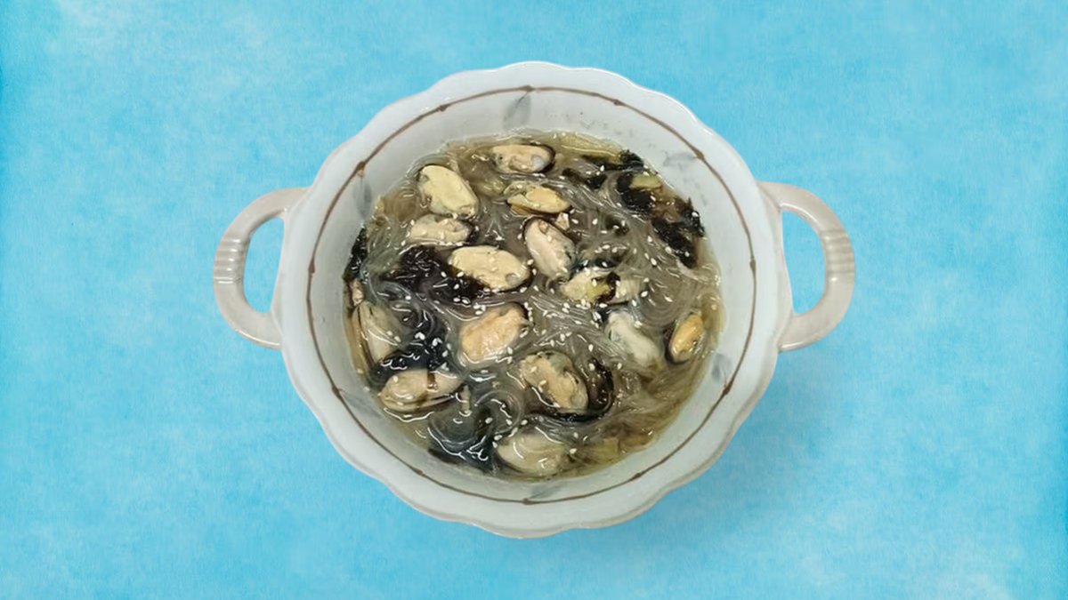 Friss dél-kínai ízvilág, kagyló és paradicsom főzve. Rizstésztával tálalva, íze könnyű és ízletes.