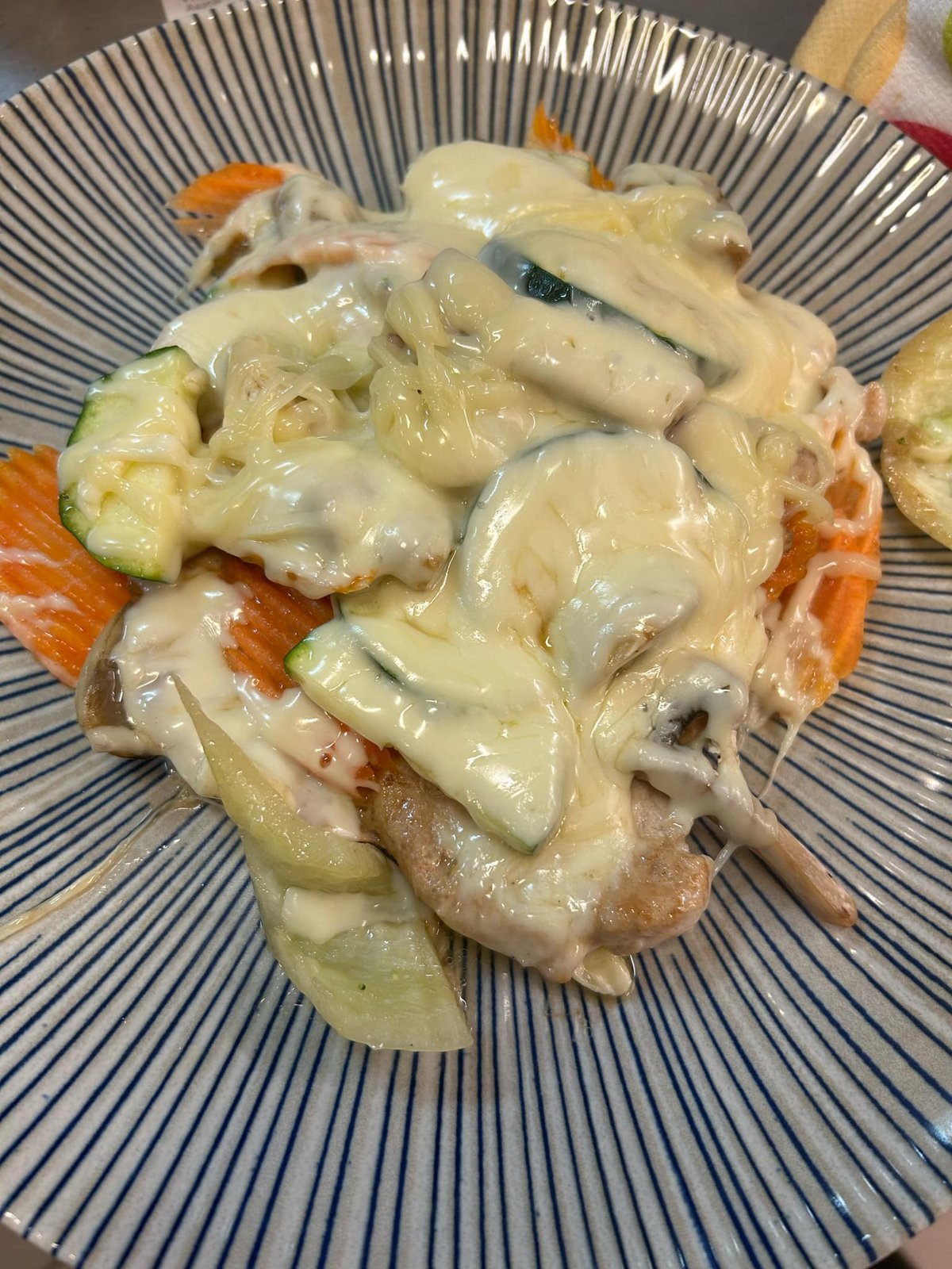 roston sült csirkemell, zöldségekkel, sajttal grillezve,/ az étel nem tartalmazza a köretet!/