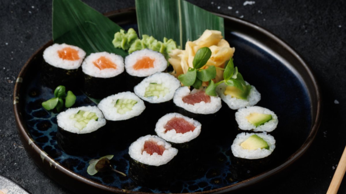 3 db lazacmaki, 3 db tonhalmaki, 3 db uborkamaki, 3 db avokádomaki.