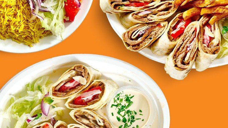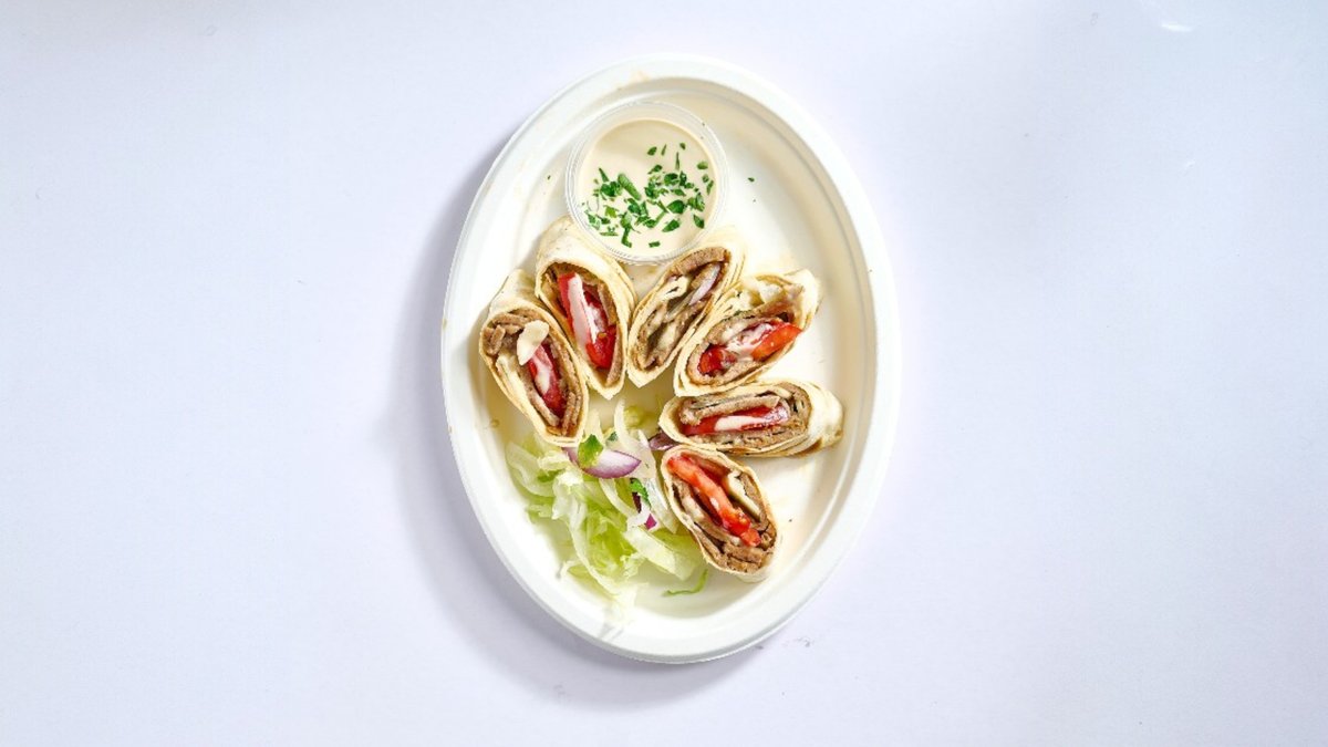 Beef Shawarma Plate /🥙 30 cm beef shawarma sandwich, 🍟 French fries, shawarma sauce🌶️ option Borjú Shawarma Tál /Jumbo myShawarma® extra szendvics (30 cm) hasábburgonyával, shawarma szósszal.