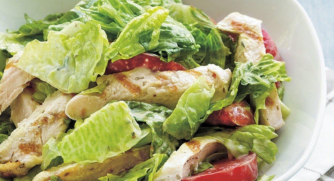 Original fresh homemade ceaser sauce , fresh chiken gyro meat, lettuce, tomato, parmesan, cruton.