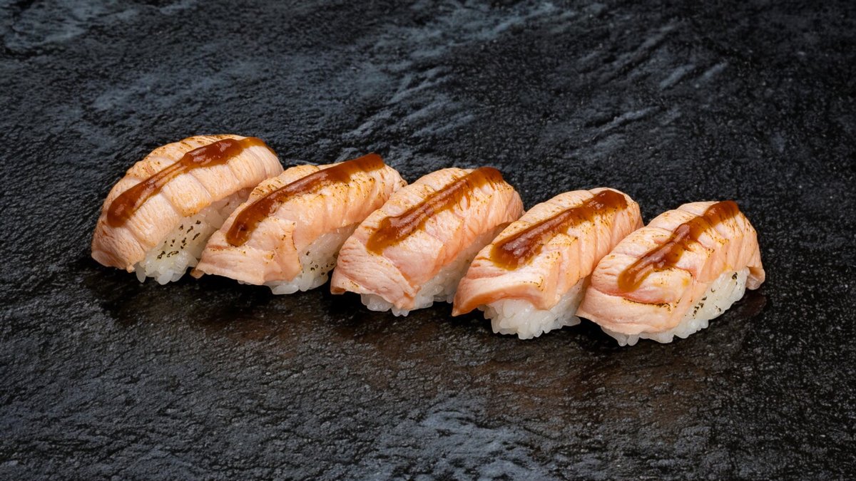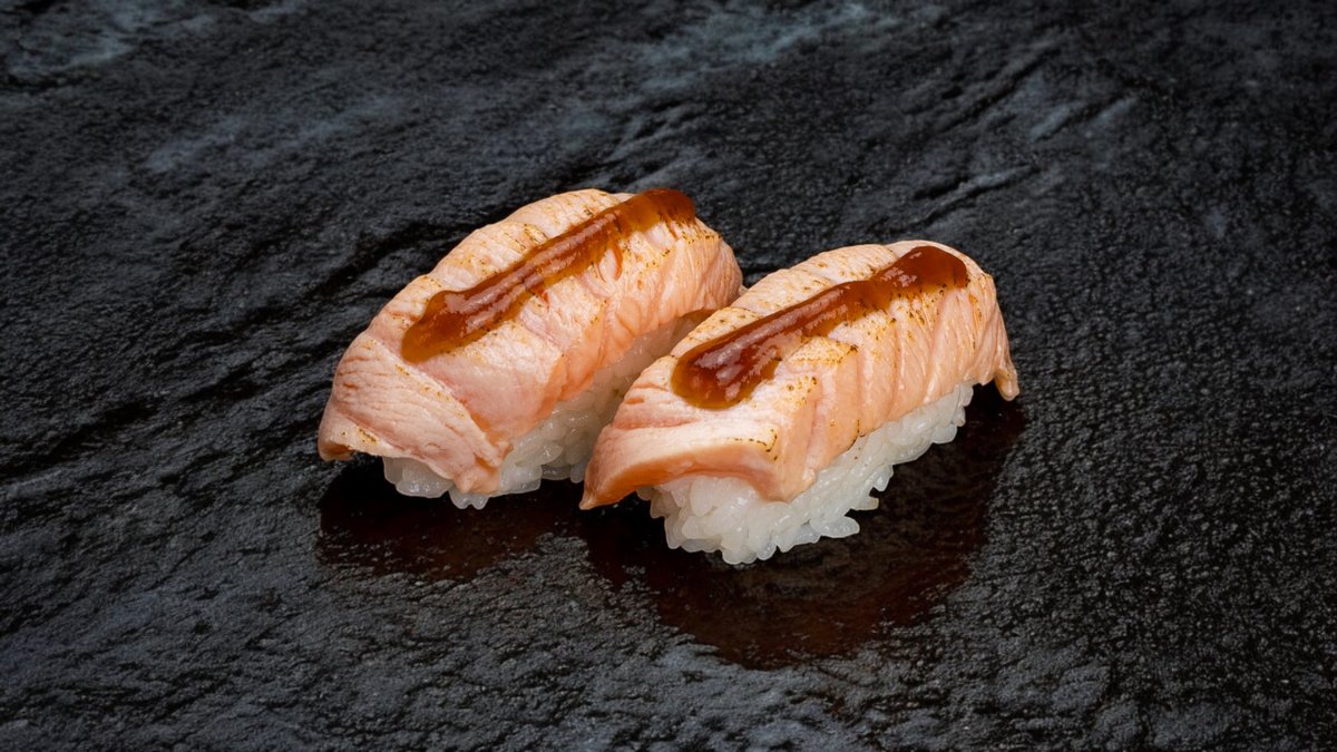 Grillezett lazac nigiri enyhén füstös ízzel teriyaki öntettel