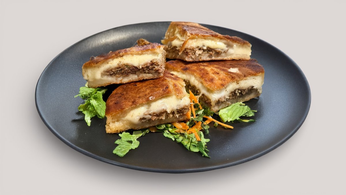 Besameles Muszaka darált borjúhússal & pitával(Bachamel Mousakka and beef & pita