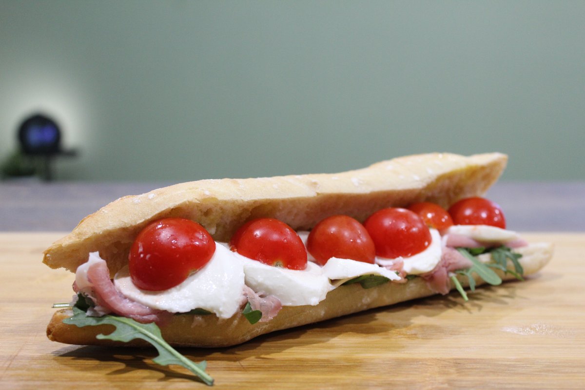 Ciabatta, prosciutto crudo, mozzarella, paradicsom, rukkola