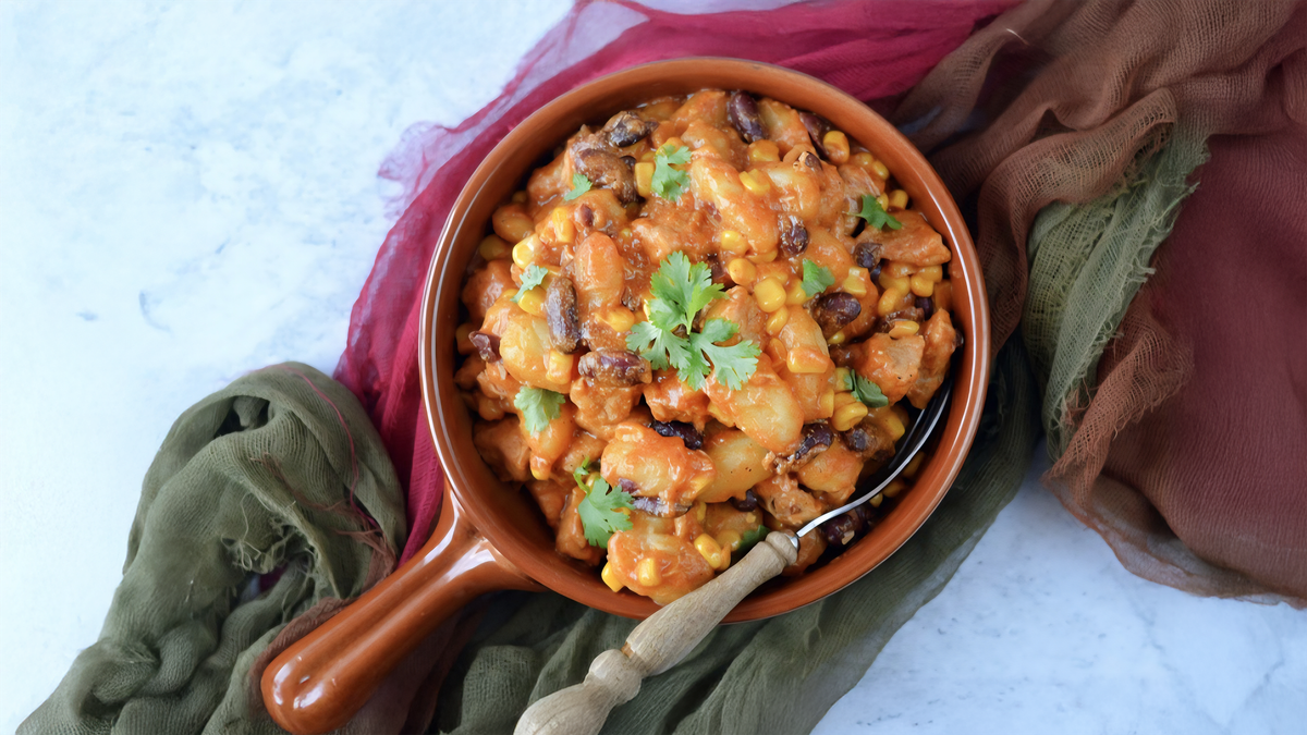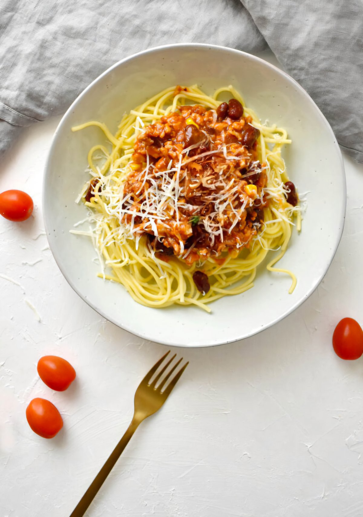 csipős Bolognai ragú - kukorica - bab - Gnocchi A kép illusztráció
